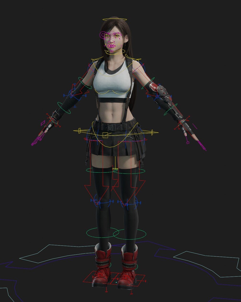 This file contains Tifa Lockhart Rig (Default Outfit from FFVII Remake) and is compatible with Blender 4.1+ (Should work fine in Cycles).